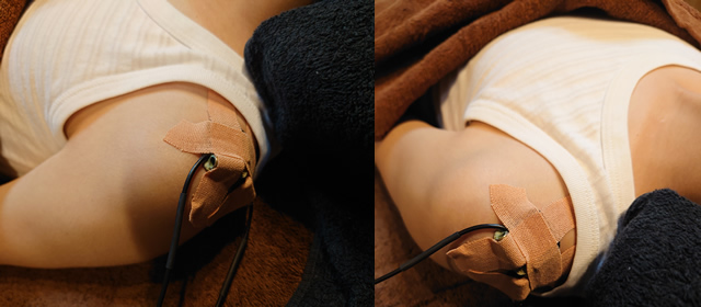 ラグビーのプレイ中に左肩部から転倒、地面で強打し負傷 圧痛部位、肩鎖靭帯にあり挙上、外転での運動制限あり ピアノキーSign(−)外観上の鎖骨遠位突出もなく 肩鎖靭帯一度損傷と仮定しエレサス治療開始 三角巾提肘、してなかったとのことなので 約1MでPain(−)荷重、腕立てでPain(−) そろそろ復帰できるかな