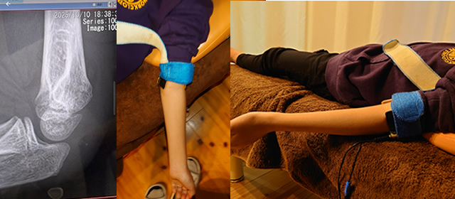 公園で遊んでいて後方転倒し、肘伸展で手を付き負傷 ヒューター三角正常 肘関節運動制限(+) 三角巾提肘のみし時間が、遅いため急遽、紹介状を作成し、整形外科受診 約3週固定 除去後 伸展制限−45度 PT=5w 伸展制限−10度 少し外反肘変形残るかな?うまいことリモデリングで治ってくれたらイーナ
